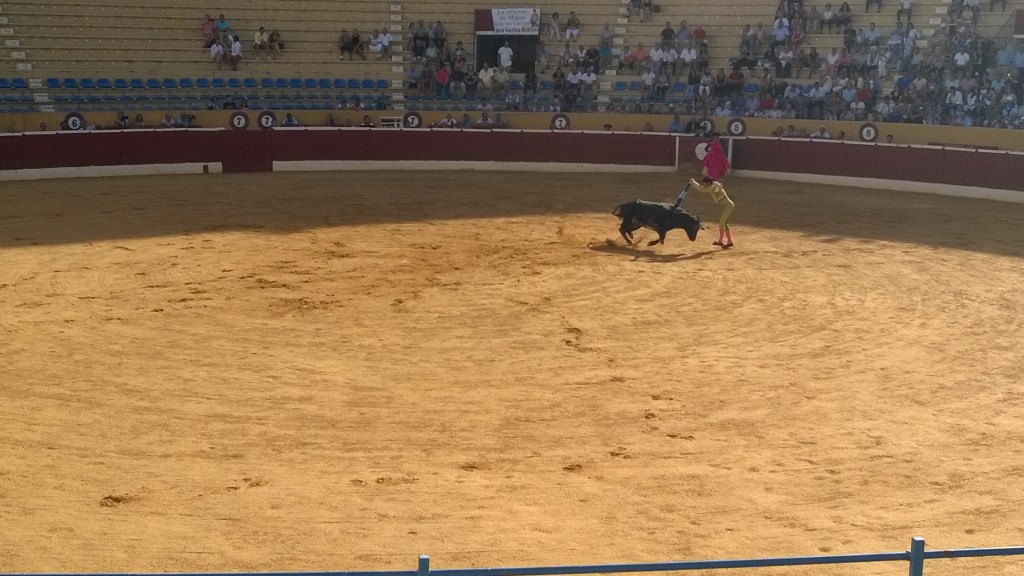 Ak sa mu to podarí na prvý raz, celá aréna tlieska a máva. Následne “Presidencia” môže dovoliť matadorovi si odniesť ako trofej kopýtko, ucho, alebo inú časť z býka. Bohužiaľ v druhom predstavení už matador nemal také šťastie, keďže bol býk asi príliš húževnatý nepodarilo sa mu ho zabiť ani na druhý či tretí pokus. A to už mi nebolo všetko jedno. V tej chvíli som chápal prečo ochranári chcú zakázať tieto zápasy, bolo mi už toho býka ľúto. Dav v tom však začal mávať bielymi šatkami čo bolo znakom jeho ušetrenia. Aj keď v takomto stave asi putoval priamo do mäsiarstva … Večer som zakončil v miestnej uličke kde som jedol svoj zatiaľ najlepší tapas, ktorý obsahoval dokonca zemiakový šalát veľmi podobný nášmu.