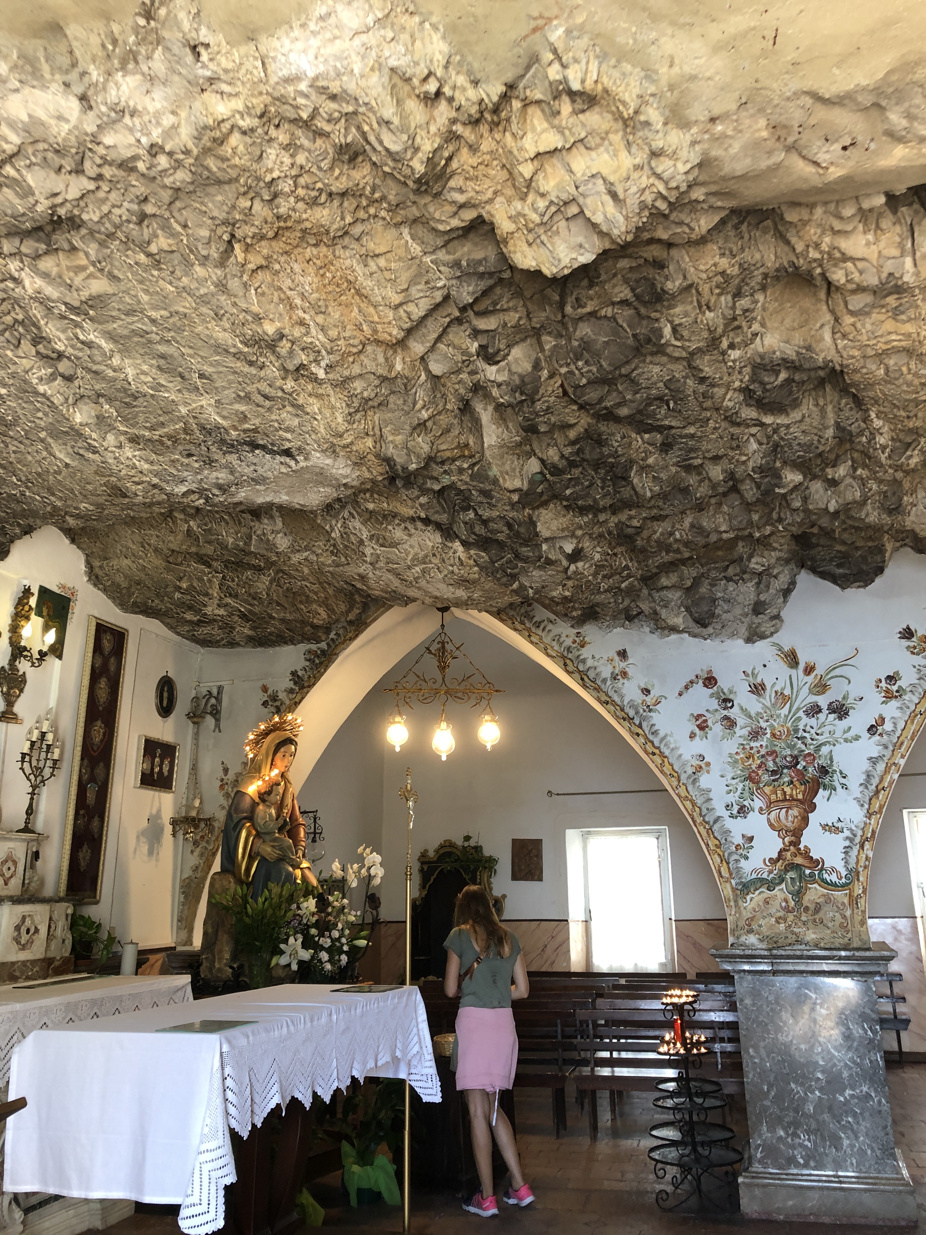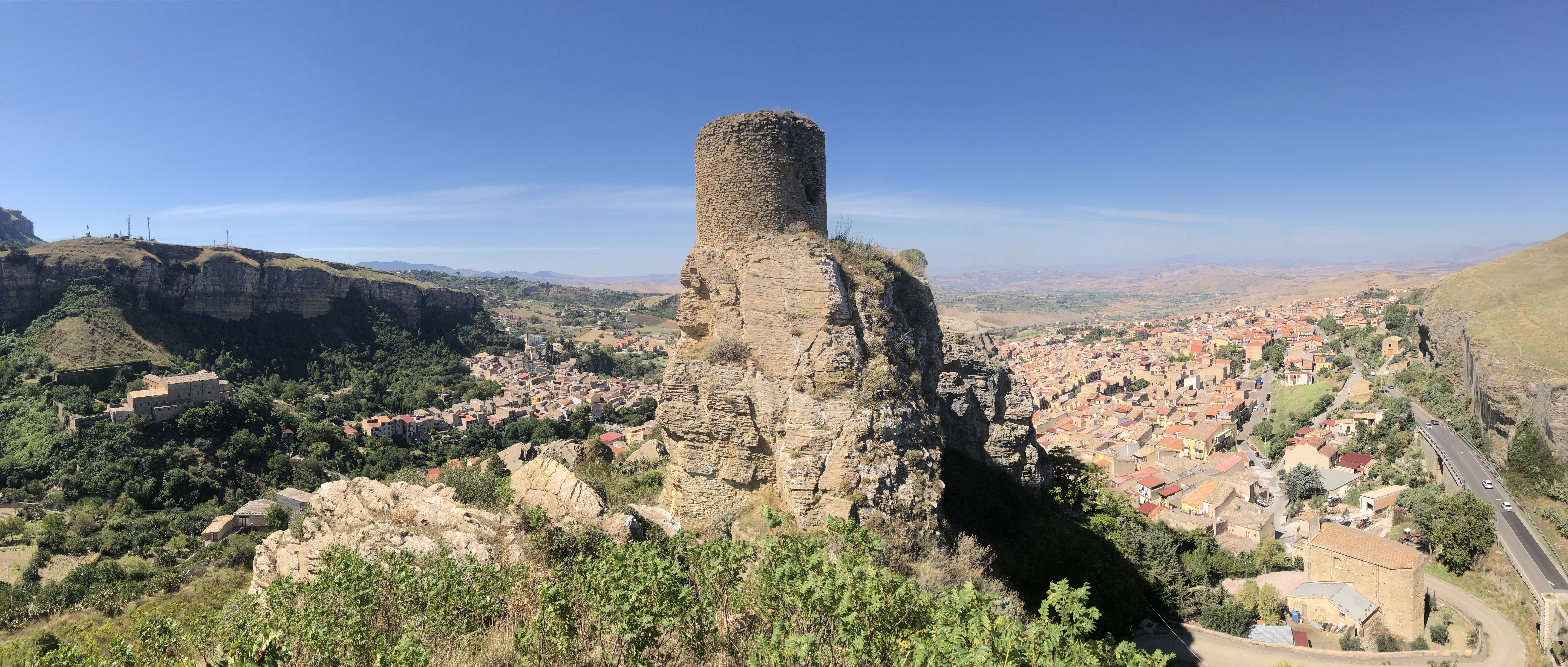 Chcelo by to ešte fotky z hore na celé mesto. Na to je najlepšie si vyjsť na hrad Castello Saraceno, ktorý sa týči nad mestom. Dá sa tam dostať buď dookola po ceste kde idú autá, alebo sa vrátite kúsok spať po hlavnej ulici a odbočíte na bočnú uličku ktorou sa dostanete na Via Circonvallazione a následne po Salita Castello ciky caky až k hradu. Hore je krásna kaplnka, ktorá vyzerá ako vytesaná do skaly no a samotný výhľad … ten nestojí za komentár.