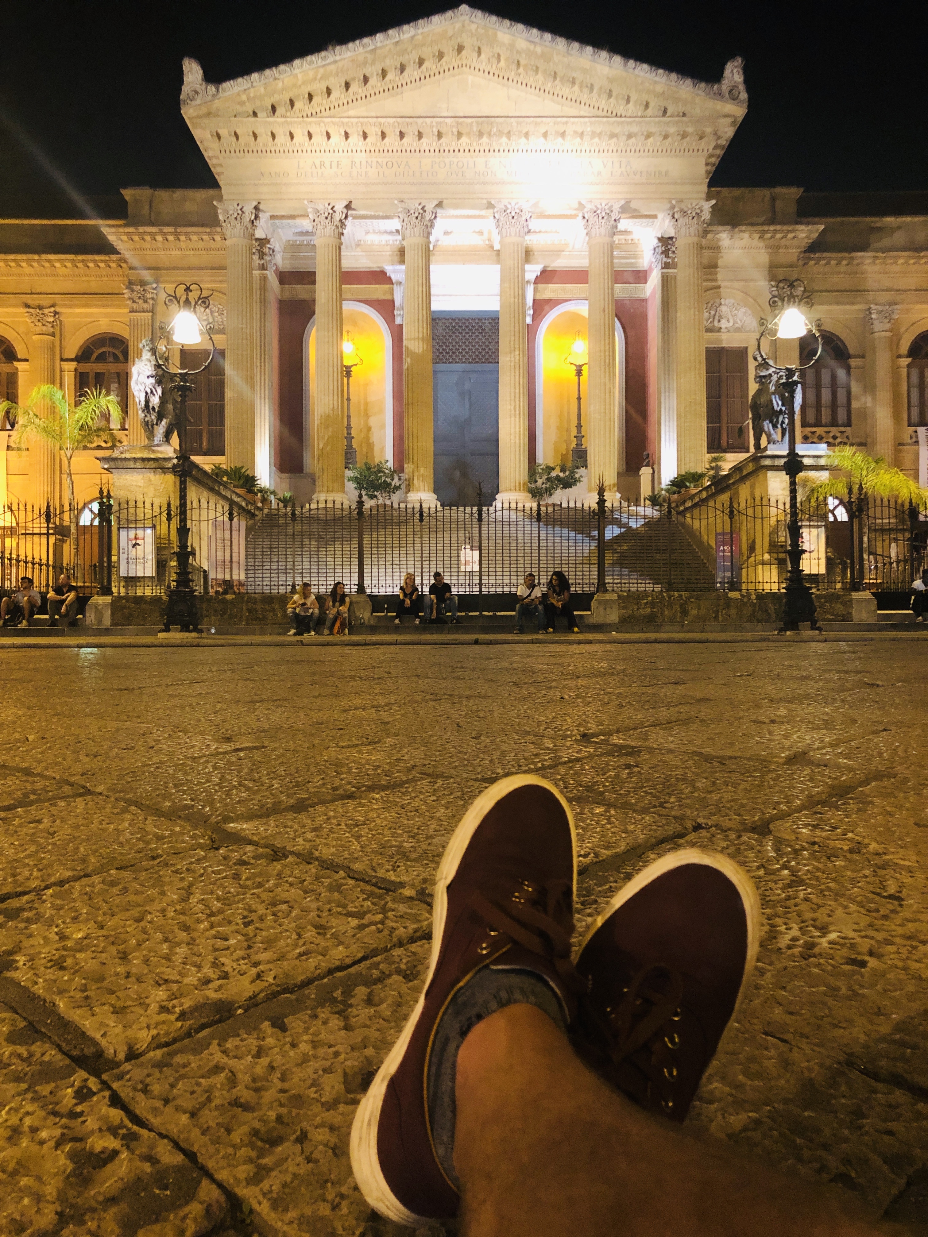 Kúsok ďalej je ešte pekný malý park s palmami a Normandský palác alebo Kráľovský palác, kde sídlil Sicílsky kráľ počas Normandskej dominancie. Opäť je načase sa ubytovať a večer sa môže vyraziť k slávnemu divadlu Teatro Massimo. Ubytovanie sme mali asi 300 metrov od divadla, pozri si ho tu. Divadlo známe aj s filmu Krstný otec je najväčšie v celom Taliansku a jedno z najväčších v Európe. Sadnite si na jeho schody alebo do blízkej kaviarne a len sledujte okolie, umelcov, domácich, turistov – srdce Palerma. Pri mojej návšteve sa práve začínala divadelná sezóna a natiahnutý dlhý červený koberec vítal prvých návštevníkov. A preto – raz určite práve tam na operu!