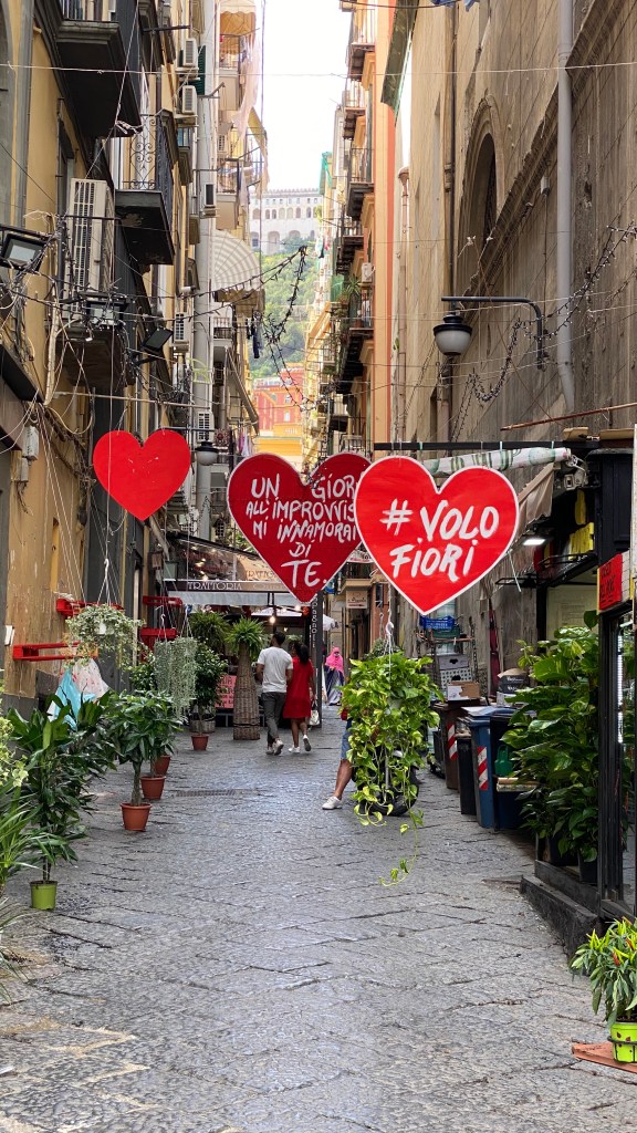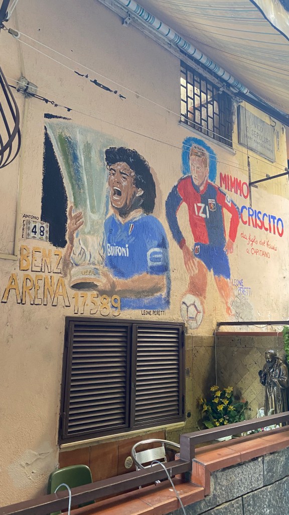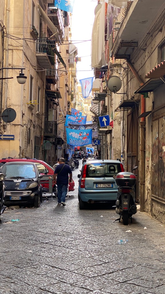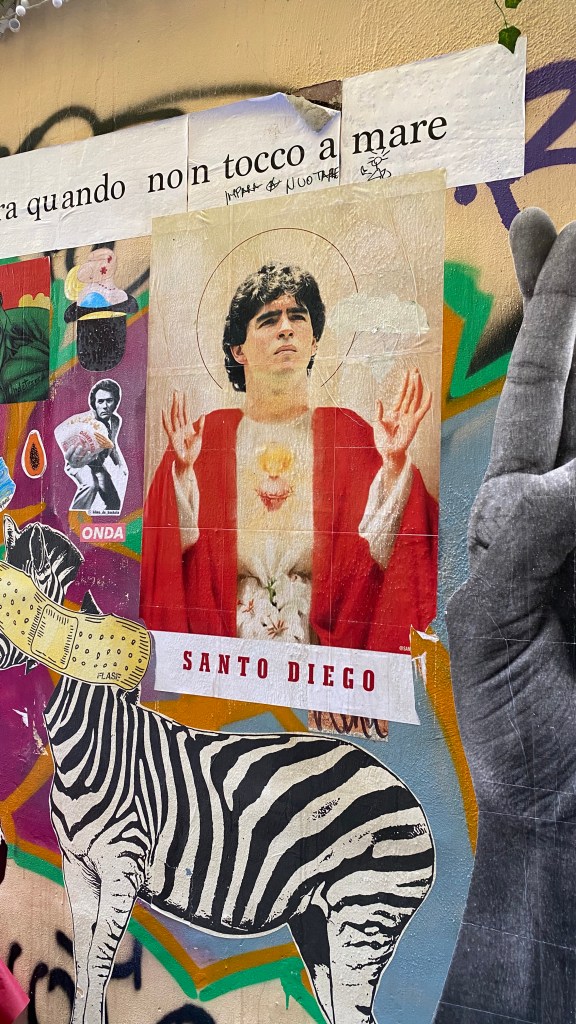 Zo železničnej stanice je to do centra len kúsok. Aj keď centrum to je vlastne spleť všelijako vyzerajúcich uličiek, ktoré sú tvorené barmi, street food-mi, reštikami a malými obchodíkmi. Samotný Neapol neponúka nejaké bohaté kultúrne dedičstvo. Takže asi ťa sklamem ak sa chystáš obzerať si historické budovy, pamiatky, sochy či kostoly. Toto nie je Rím ani Florencia či Miláno. Ale zas aby som neodrádzal, keď pôjdeš po Via dei Tribunali tak určite omrkni Neapolské Duomo, Banksyho počin Madonna con la Pistola, či kaplnku Sansevero. Kostolíkov je tu celkom dosť, niektoré sú zvonku dosť zaujímavé, atypické. Taktiež často po meste natrafíte na sošku panny Márie, pri ktorej zvykne byť aj iný rovnako dôležitý patrón – Diego Maradona.