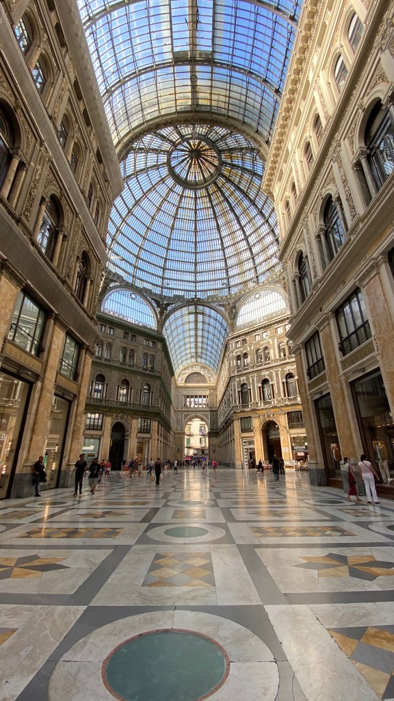 Následne z tejto štvrte sa môžeš vydať na juh smerom k prístavu. Prejdeš popri Galerii Umberto I, ktorá sa nápadne podoba na Galeriu Vitto Emanuele v Miláne. Ďalej na Piazza del Plebiscito, kde sa nachádza kráľovský palác až dorazíš k promenáde v prístave ktorá vedie k pevnosti Castel dell Ovo. Hrad bol v čase Covid pandémie uzavretý ale aj z vonku je pekný. Ak si chceš späť do centra skrátiť cestu odvez sa miestnym metrom a rozhodne zájdi na stanicu Toledo. Zistíš, že stanica metra nemusí byť iba sivá a betónová ak sa do toho pustia moderný umelci.