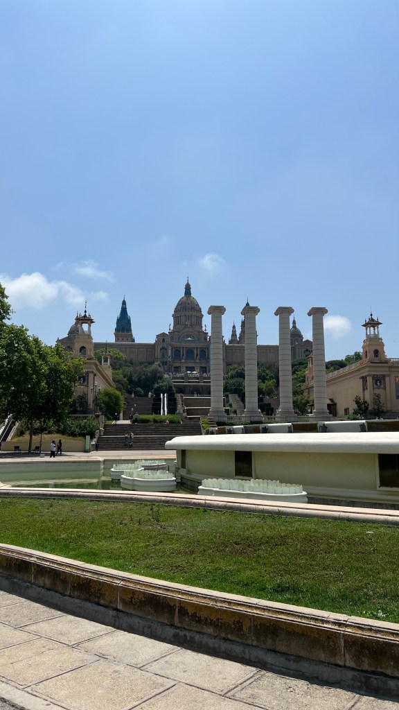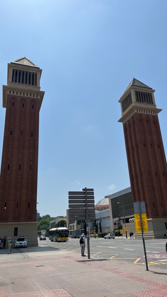 - La plaza de Espanya a Katalánske národne umelecké múzeum – priamo z metra vystúpiš na námestí, kde sa na jednej strane nachádza veľké nákupné centrum ktoré architektúrou pripomína býčiu arénu. Na strane druhej sa týčia dve veže Torres Venecianas, ktoré tvoria akúsi bránu k vzdialenejšiemu múzeu. Cestou ku Katalánskemu múzeu uvidíš veľa veľa schodov. Na začiatku je síce krátky eskalátor ponad cestu, avšak zvyšok si budeš musieť vyšliapať sám. Verím však, že z hora musí byť veľmi pekný výhľad na celú ulicu. Pod múzeom je ešte veľká kaskádovitá fontána, ktorá vyzerala byť podľa fotiek veľmi pekná. Škoda však, že počas mojej návštevy nefungovala.