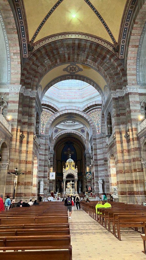 - Notre-Dame de la Garde – sa nachádza na kopci oproti prístavu. Dá sa sem vyštverať aj pešo no ja odporúčam obetovať 2€, ušetriť čas a vyviesť sa autobusom č.60. Lístok platí 1h takže stíhate aj cestu dole. Vstupné sa neplatí ani v jednej katedrále takže si môžete pokojne pozrieť jej krásny interiér. Taktiež sa dá prejsť z vonku dookola a keďže stojí na kopci tak ponúka krásne výhľady na cele mesto.