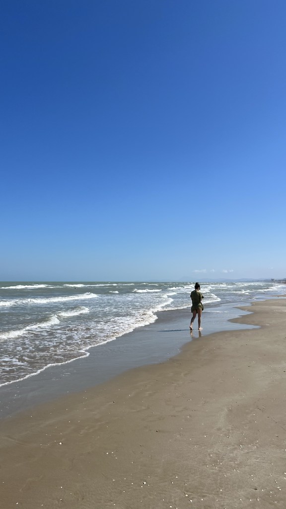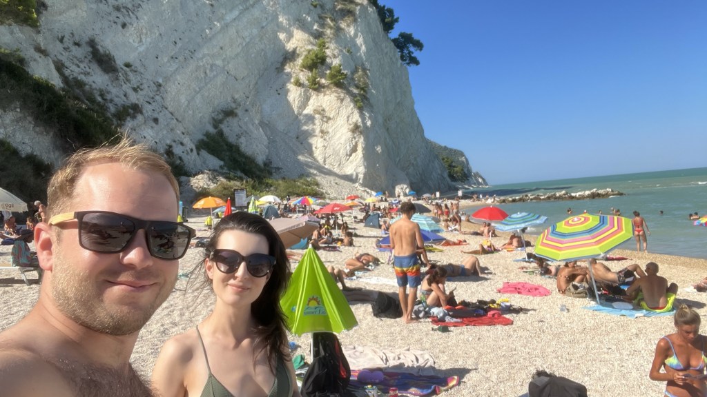 - Pláž v meste Senigallia – toto je typická jadranská pláž, podobná tým v Rimini alebo na severe Talianska. Ide o dlhú, širokú piesočnatú pláž s prijemným jemným pieskom. V podstate na celej pláži nájdete reštaurácie a bary, ktoré prenajímajú lehátka a slnečníky. Cenu majú všetci rovnakú takže nemusíte chodiť od domu k domu (cca 24€ pre 2 lehátka a 1 slnečník). Aj keď skoro celá pláž je súkromná, vždy musí byť vyhradený priestor aj pre ľudí ktorí si nechcú platiť. Stačí len hľadať miesto s dekami a slnečníkmi. Čo sa týka prístupu do mora tak je to ideálne pre rodiny s deťmi pretože vstup je naozaj pozvoľný a ešte takých 30 metrov od pláže máte stále vodu iba po pás. Tým, že podložie je z veľmi jemného piesku tak samozrejme trochu zakaľuje vodu avšak určite by som to nenazval „špinavým morom“.