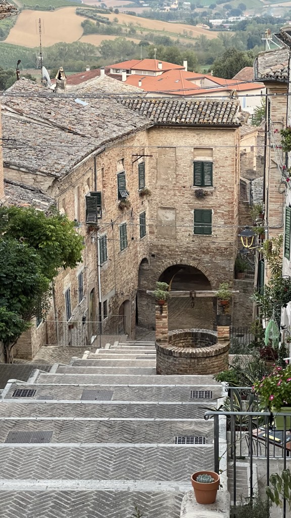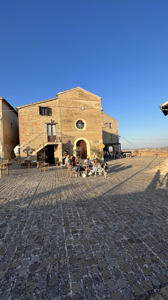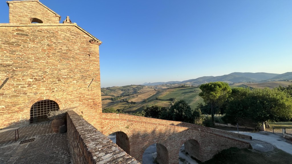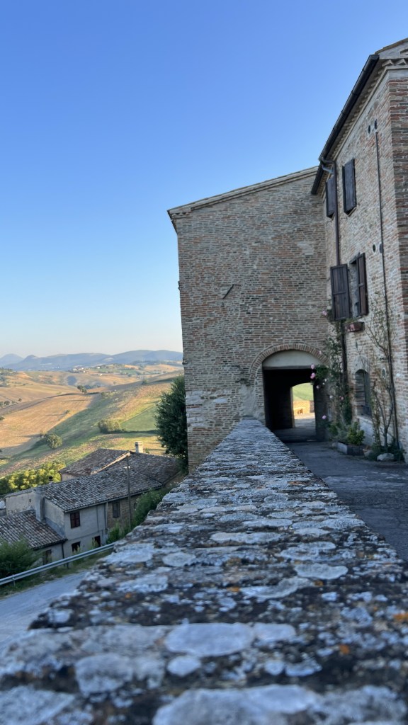 Loretello – jedna z najmenších dediniek v regióne Marché. Tvorí ju iba pár domčekov, stredoveké hradby a menší hrad. Je tu však aj bar s aperitívom a nádherným výhľadom na okolité kopce a jedna krásna reštaurácia “La Grotta di Loretello“. Odporúčam sem zájsť na západ slnka.