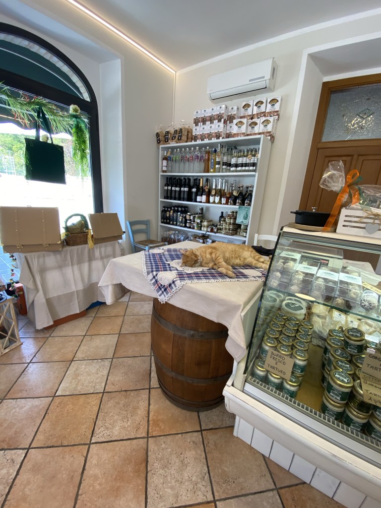 La Grotta di Loretello – jednoznačne najkrajšia reštaurácia v celom regióne. Zasadená v malej dedinke, večeriate na záhrade pod olivovníkmi s výhľadom na okolité kopce. Používajú výhradné domáce vypestované plodiny a určite ochutnajte tiramisu, je famózne! Zájdite tu na večeru pri západe slnka, nebudete ľutovať.