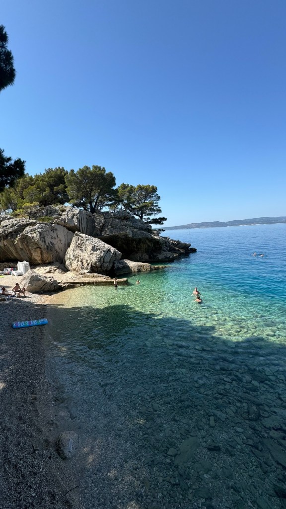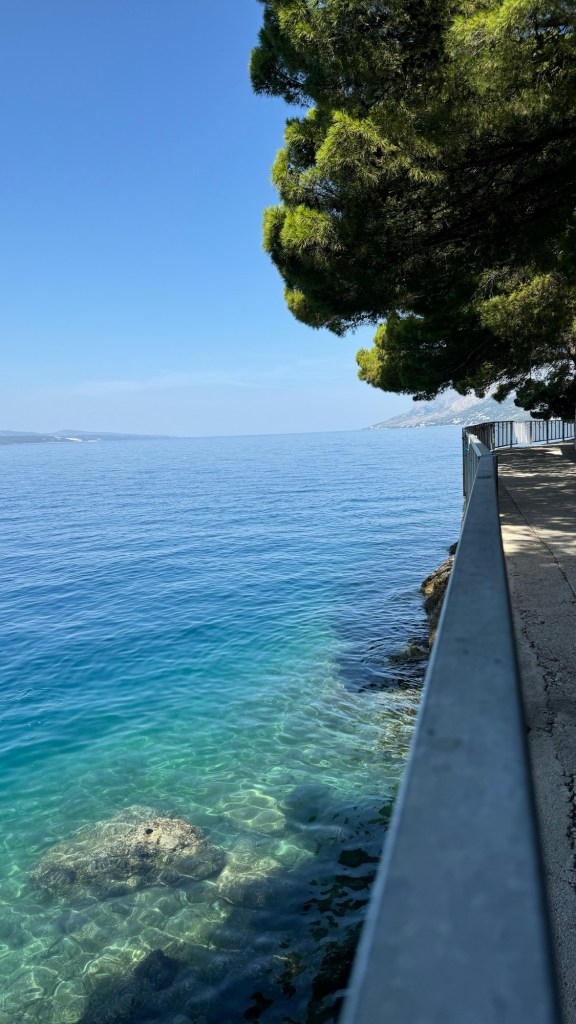 Makarská riviéra má teda odo mňa zelenú a ak si porovnám či za 11 hodín prídem niekde tesne pod Benátky k moru s rozvíreným pieskom alebo sem kde je azúrovo čisté more, vyberám si teda Chorvátsko.